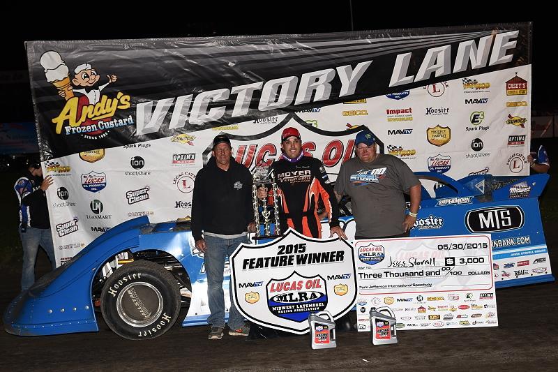 Late Models took the track next for their 40 lap feature. Jesse Stovall took the lead on lap one from his 2nd starting spot. Stovall would use the top side of the track around the Park Jefferson Speedway to pull away from Jason Utter and Terry Philips. A lap 14 caution would bunch the field up on the rear of Jesse Stovall. On the only restart of the race, Stovall jumped back to a comfortable cushion, while Kyle Berck moved into 3rd with passes on Utter and Stormy Scott. Stormy Scott would slide by Utter for fourth, but Utter would return the favor laps later as Scott fell back to 5th. Stovall would continue to lead Philips out front as both maneuvered through lap traffic without issue. Stovall would cruise to victory to claim the $3,000 check. Philips took 2nd, Berck finished 3rd from 12th, Utter finished 4th, and Rodney took 5th from the 18th starting position.