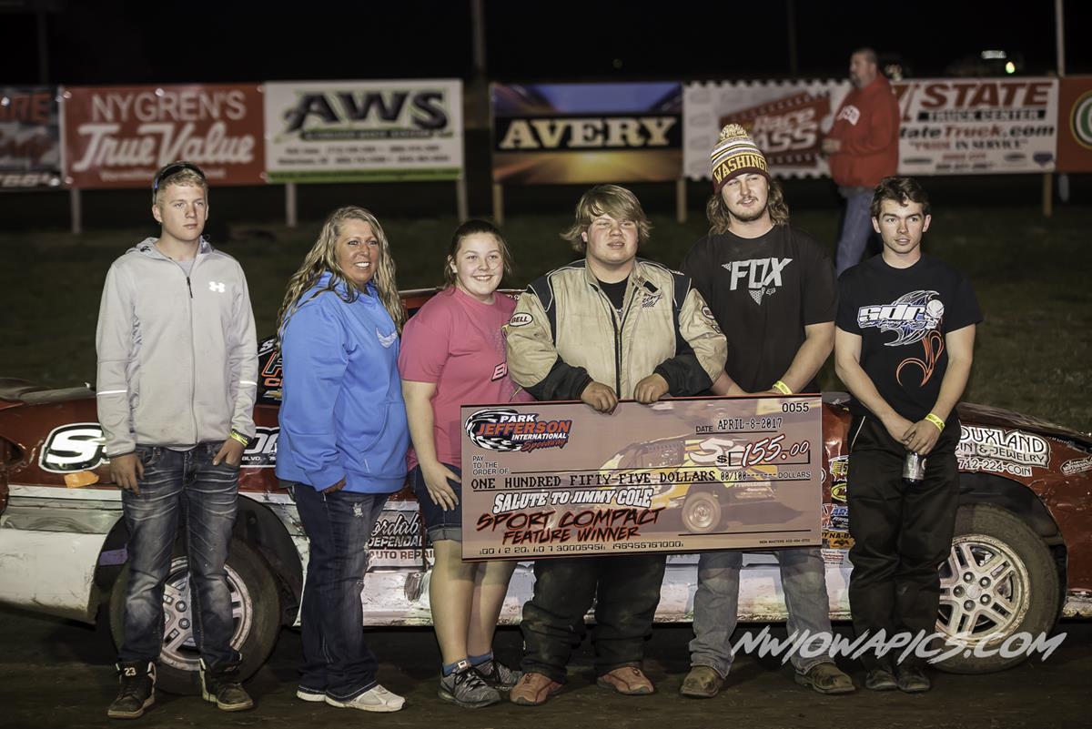 Mapleton, Iowa’s Jim Thies also used a third place starting spot to his advantage to take top honors in the SignMasters Modifieds. Thies, who was the 2015 track champion, was able to work around 3rd place finishing Chad TenNapel and Shane Demay to take the top spot in the modifieds. Sioux Cities, Bob Moore came from ninth and worked all lines around the track to jump into the point lead by virtue of his runner up finish.