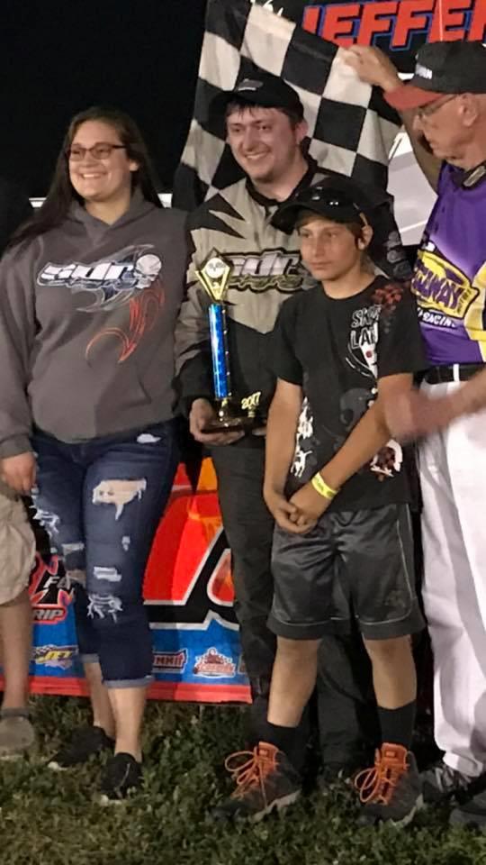 In the SignMasters modifieds, it was regular competitor Shane Demey finding victory lane for the first time this season. Competing regularly for the first time this season, Demey has admittedly struggled. However, he used is up front starting spot to charge away to victory. Point leader Bob Moore was struggled with fuel issues and coupled with the strong run by Ricky Stephans, was able to apply pressure to Bob Moore atop the point standings. Jim Thies continues his strong runs at Park Jeff and finished third with top IMCA Modified Rookie Zach Van Voorst just finishing off the podium.