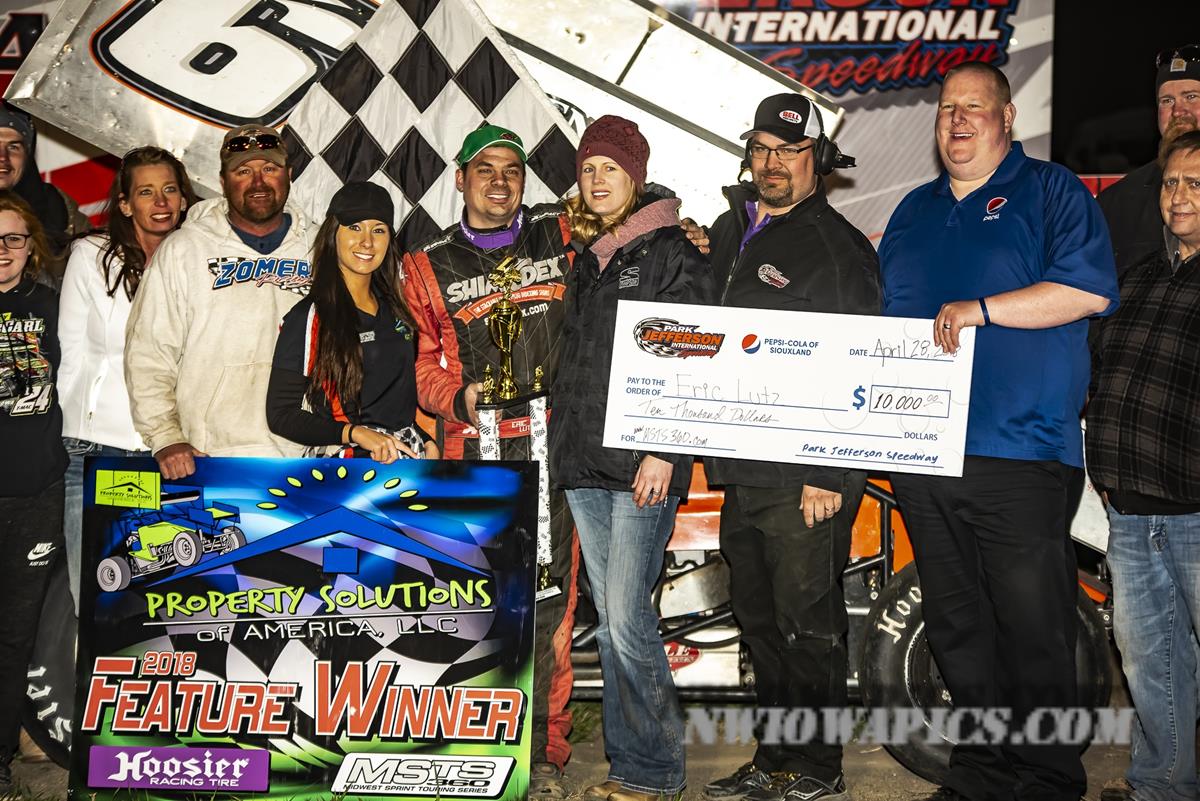 On a night that saw a near capacity crowd fill the Park Jefferson Speedway Grandstand, it was a South Dakota native taking home the largest first place check this year in the state of South Dakota as Eric Lutz trumped 37 other cars to win the 1st ever South Dakota Sprint Car Nationals presented by Pepsi.