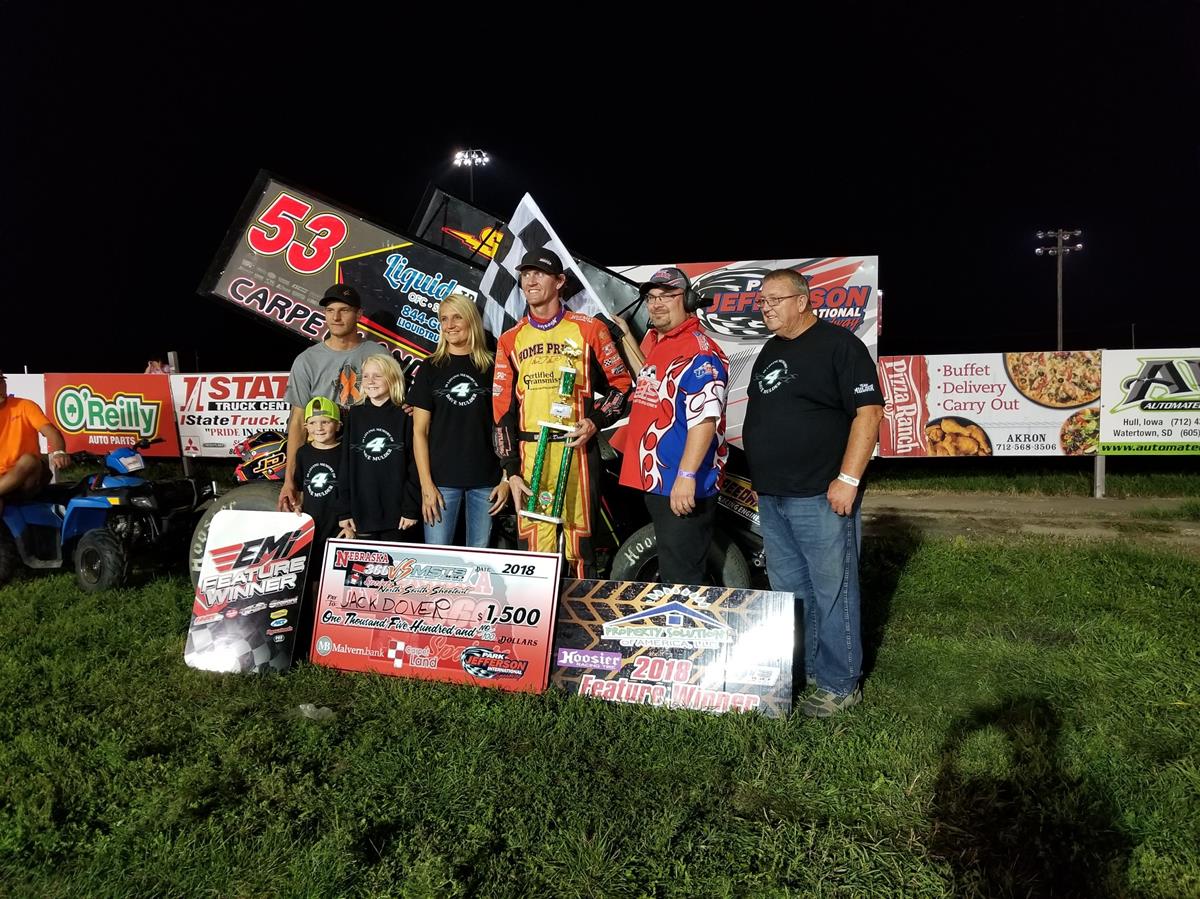 Jack Dover took the lead on the third circuit of Saturday’s feature event at Park Jefferson Speedway. It’s the 7th win with MSTS in 2018 for Dover and 6th with the Nebraska 360s.