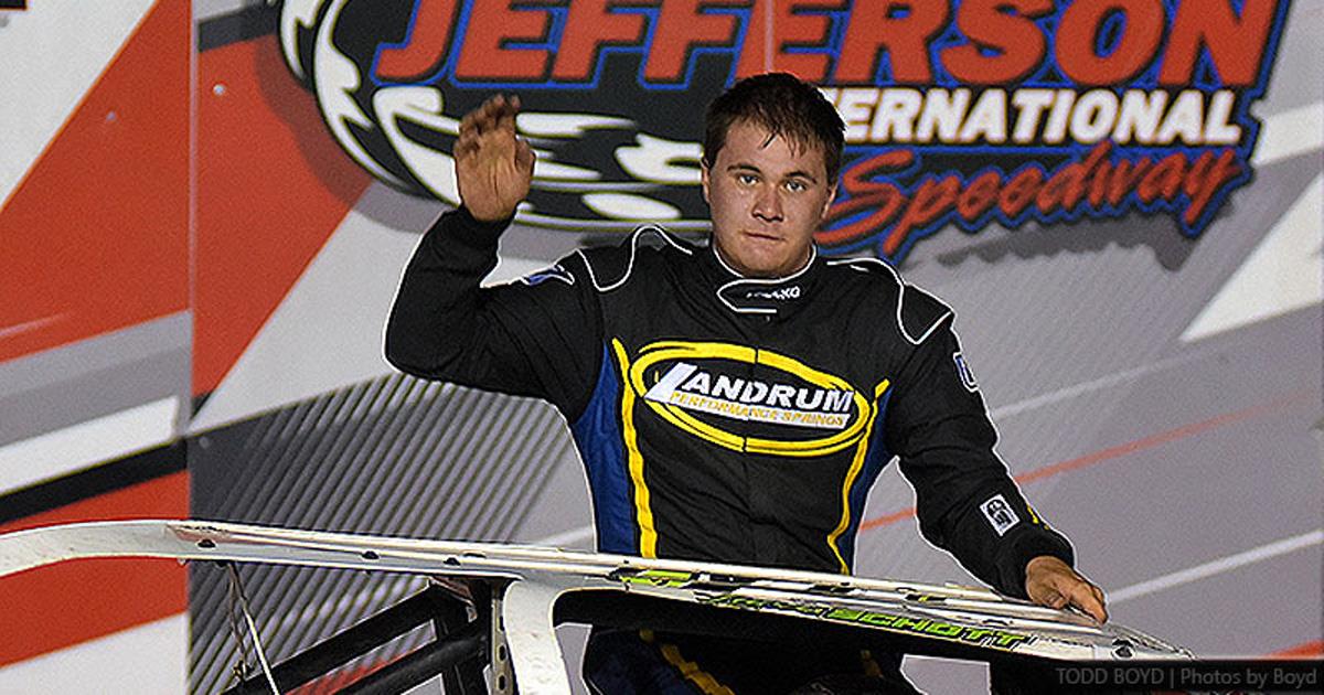 By USMTS PR (Jefferson, SD) -- The United States Modified Touring Series paid its eighth visit to the Park Jefferson Speedway on Saturday, and Lucas Schott emerged as the eighth different winner of the USMTS River City Rumble.