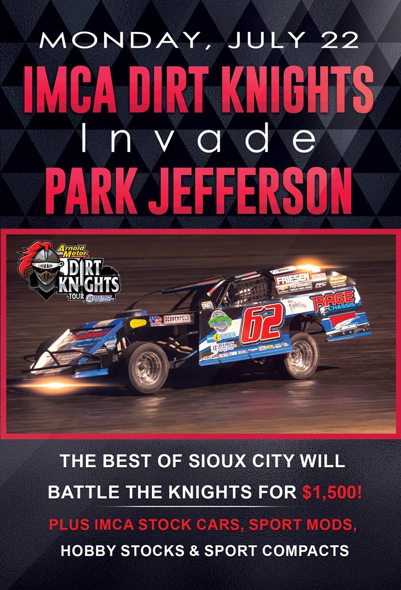IMCA Dirt Knights invade Park Jefferson Monday, July 22nd.