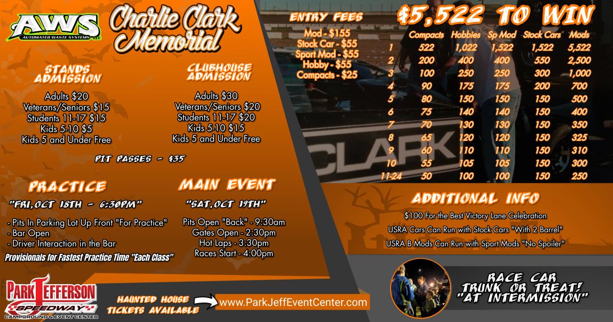 One last race to end the year at Park Jefferson Speedway! Mark your calendars for SATURDAY, OCTOBER 19th! ??5K TO WIN MODIFIEDS??