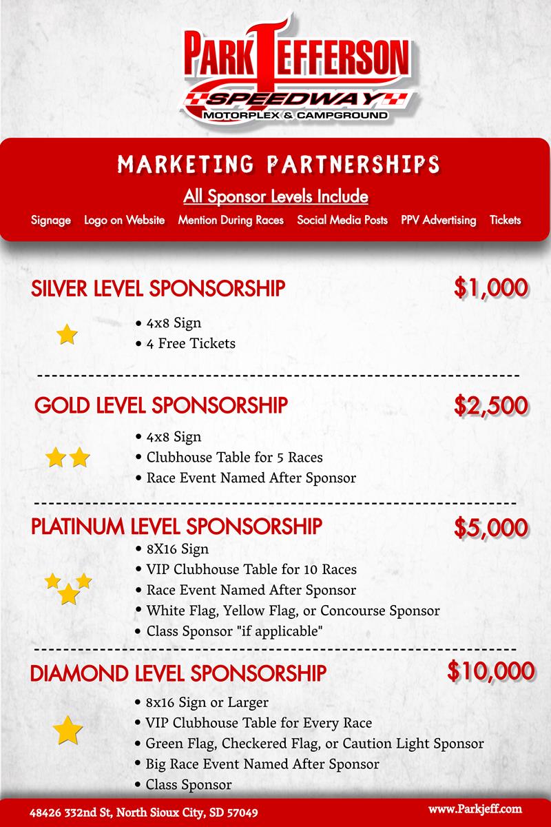 We’re now offering sponsorship opportunities for the 2025 race season at Park Jefferson Speedway. Whether you're a local business looking to boost visibility or an individual wanting to support the track, we have packages designed to fit your goals.